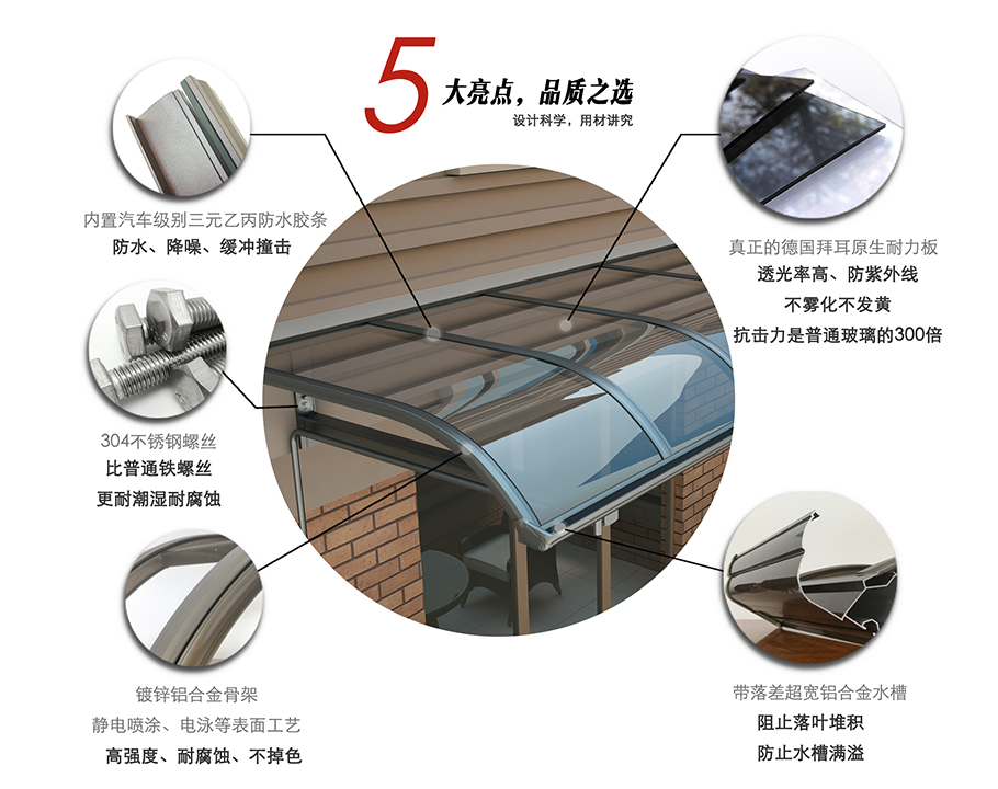 高強度鋁合金骨架+"防彈玻璃"等級耐力板=堅不可摧德國拜耳原生料耐力板特點